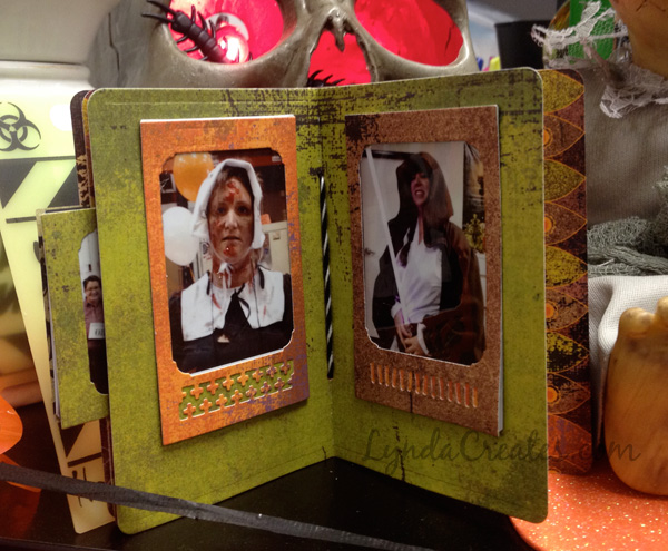 Halloween at work can be a lot of fun. I prepared a simple photo album using my Mini Album die by Sizzix. I had precut the pages and photo frames in preparation for the fun and spooky costume photos.