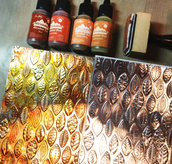 I used Alcohol Inks to add Autumn colors {left} to the silver foil {right}.