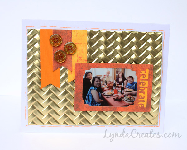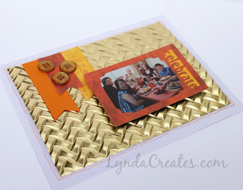 For the Woven card, I used the gold Rinea paper foil and the Sizzix 3D Textured Impression embossing folder, Woven to create the background. The depth and detail are stunning when used on metallic paper and this foil handled it perfectly.