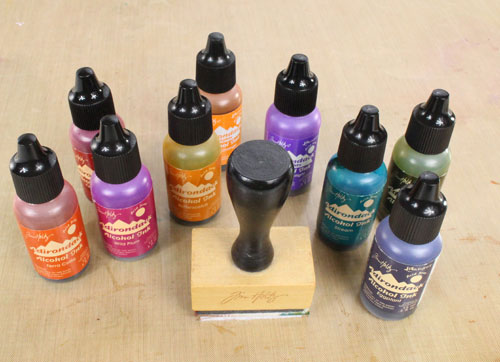 I die cut and embossed five butterflies to experiment with applying Ranger Alcohol Inks. I used Cranberry, Sunset Orange, Butterscotch, Purple Twilight, Wild Plum, Bottle, Lettuce, Stream and Eggplant.