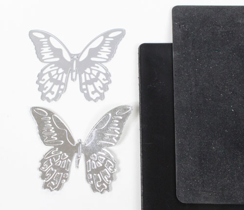 You can see that the die cut butterfly did not have a lot of detail when it was first cut. The die seen at the top of the photo above, has lots of detailed openings but they are not designed to cut. Using the special pads created the embossed details seen below.