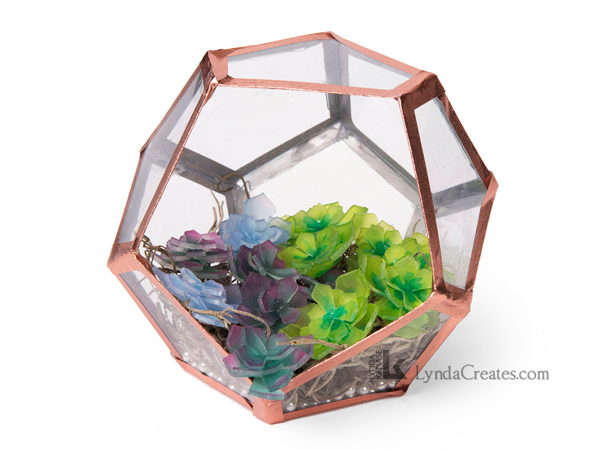 I used foil craft tape from Michaels to add the appearance of the metal that holds together a real glass terrarium.