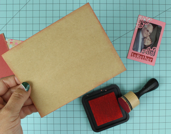 Lightly brush on the Worn Lipstick Distress Ink around the edges of the folded card.
