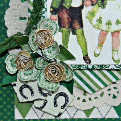 Photo 7: Die cut more of the Paper Clippables flowers; form and adhere to fussy cut clovers from pattern paper.