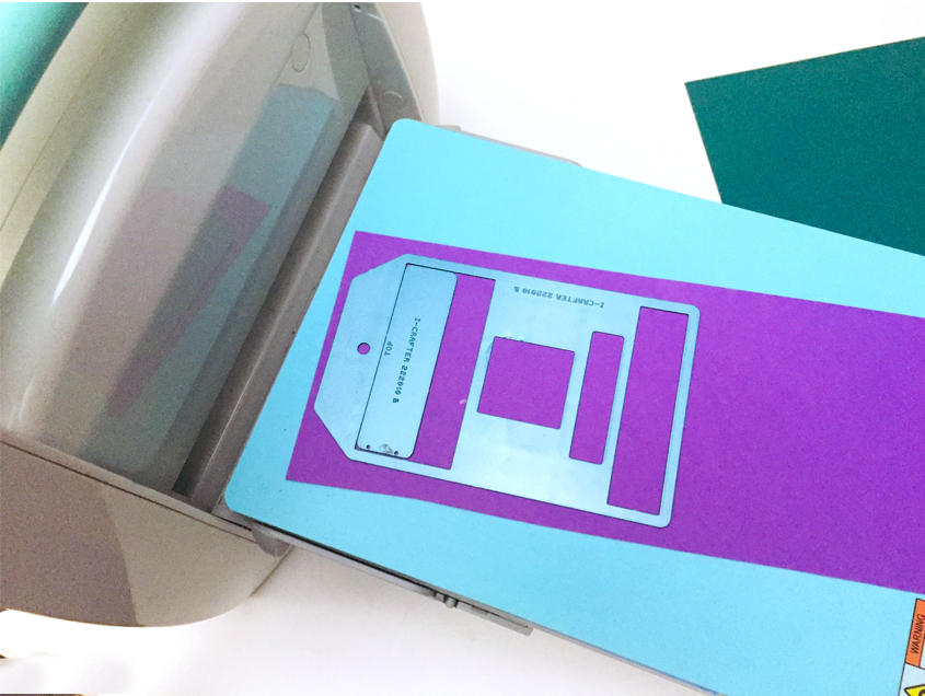 Once all of the painted bases are completely dry, trim to fit into a die cutting machine. For the front of the tags, use the Zip Gift Tag die without the zip insert.