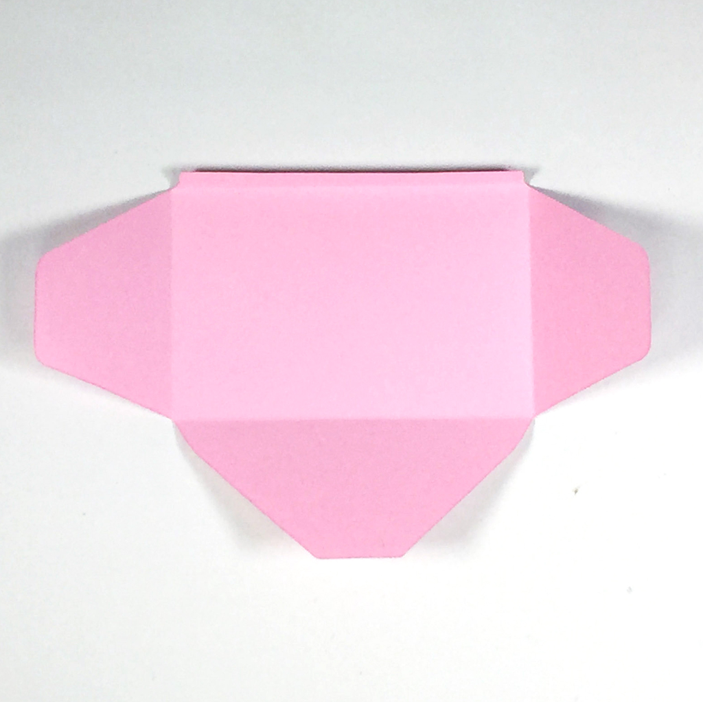 Fold in the side flaps and apply adhesive to the vertical edges and along the bottom angled edges.
