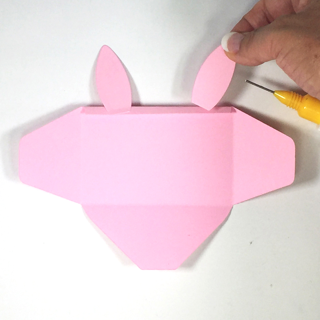 Die cut the largest shape from pink card stock. Die cut two ears from the same pink card stock.