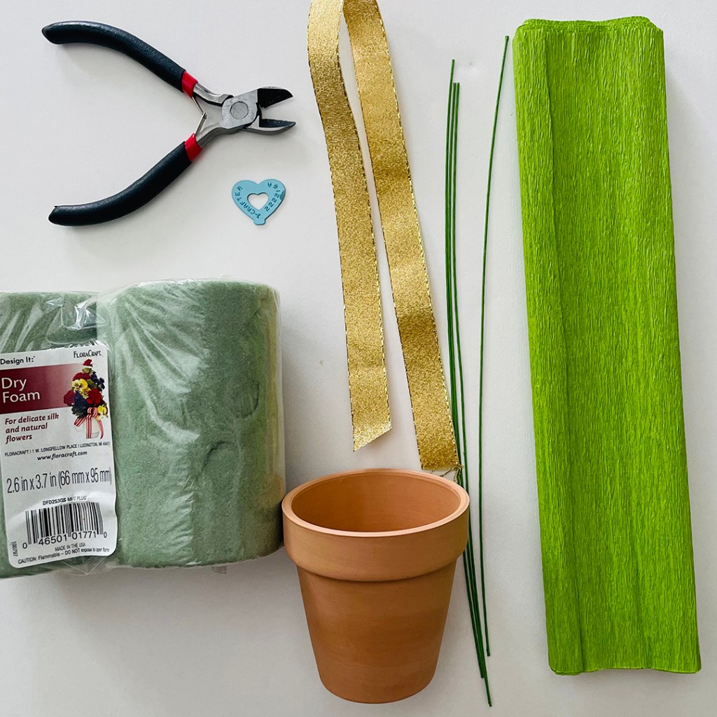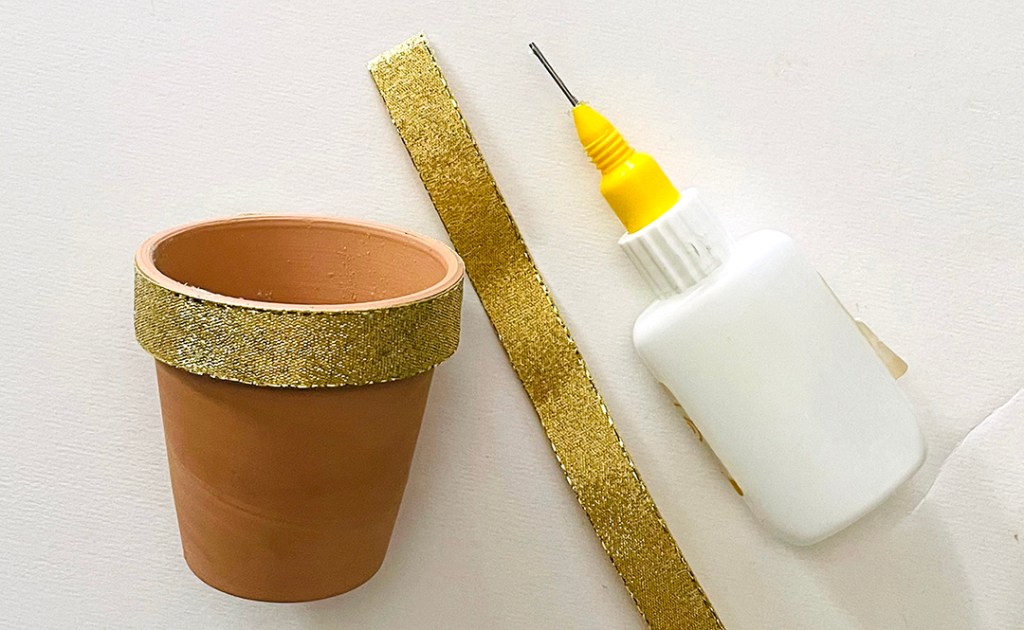 - 1/2 inch wide gold ribbon to wrap around the pot