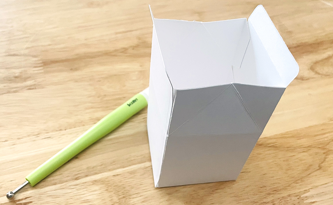 Die cut two of the Milk Carton die shapes. Fold the creases as shown.