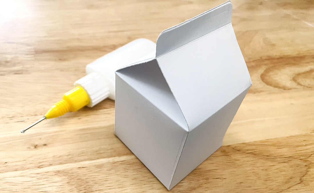 Apply adhesive to half the length of the top flap so that the milk carton can open