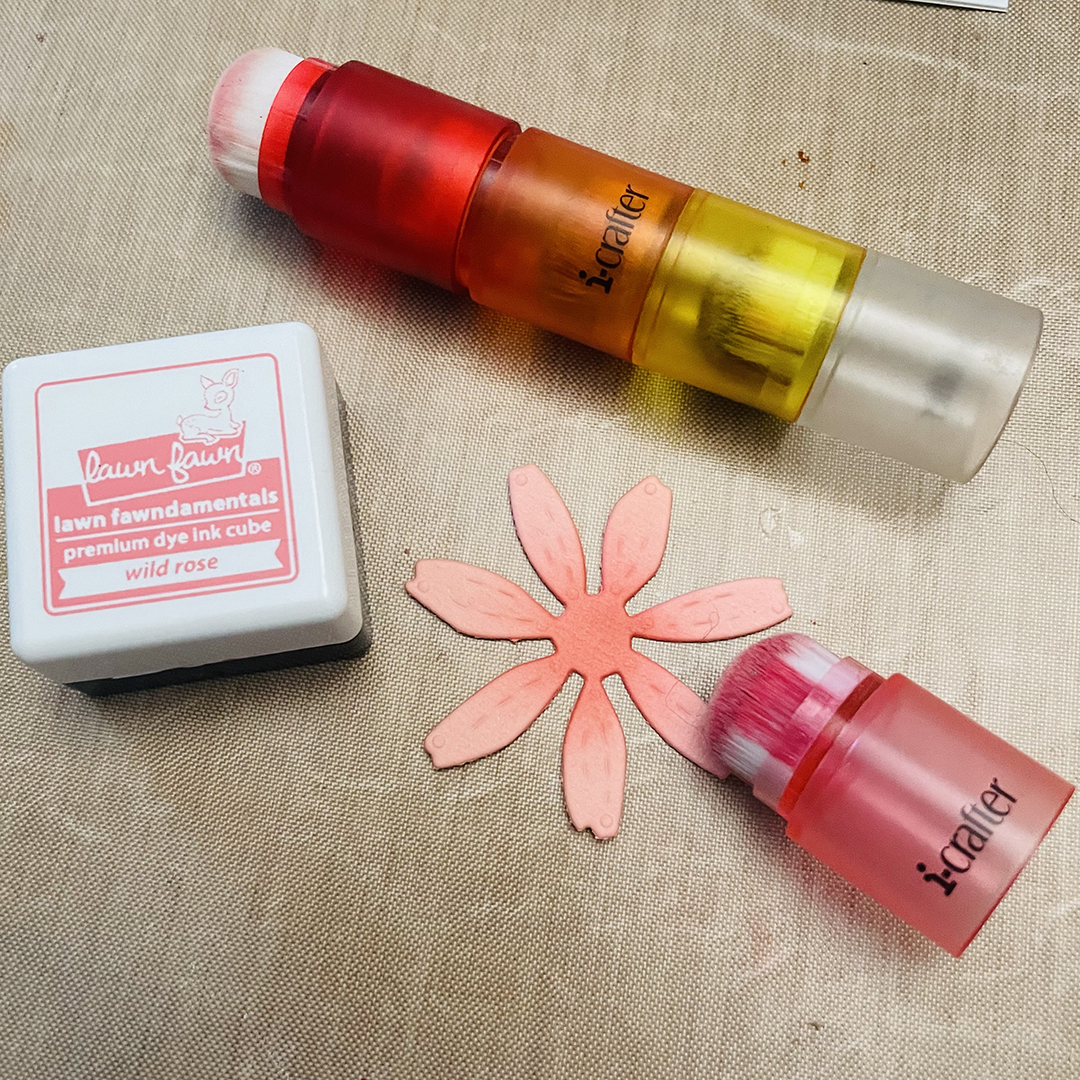 Using the i-Brush Blending Brush, ink just the center of 3 of the light pink flowers.