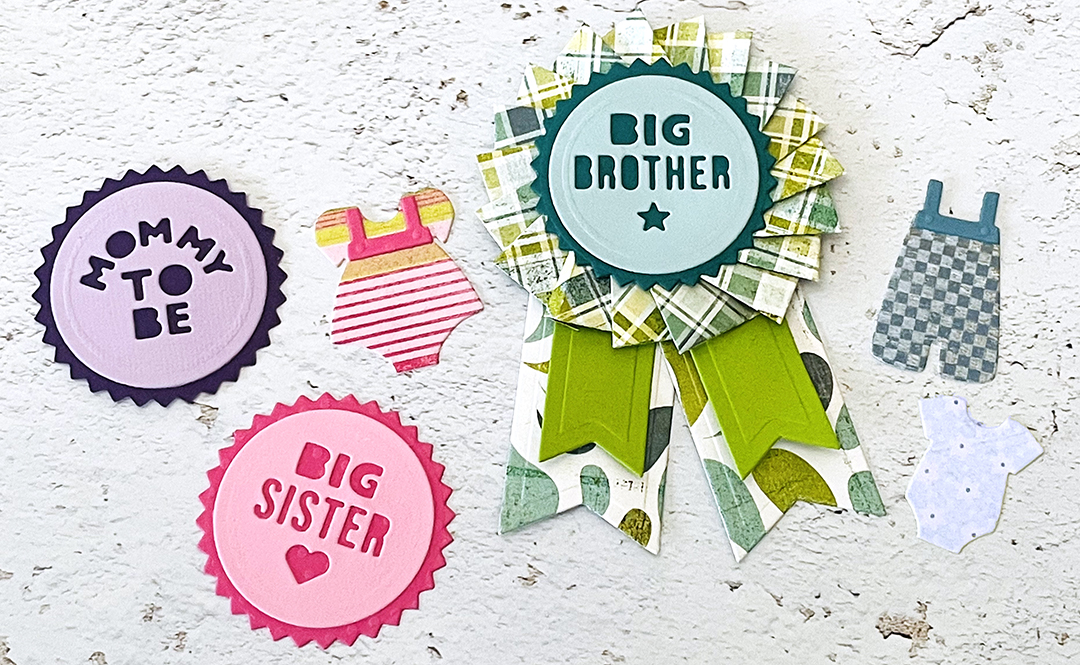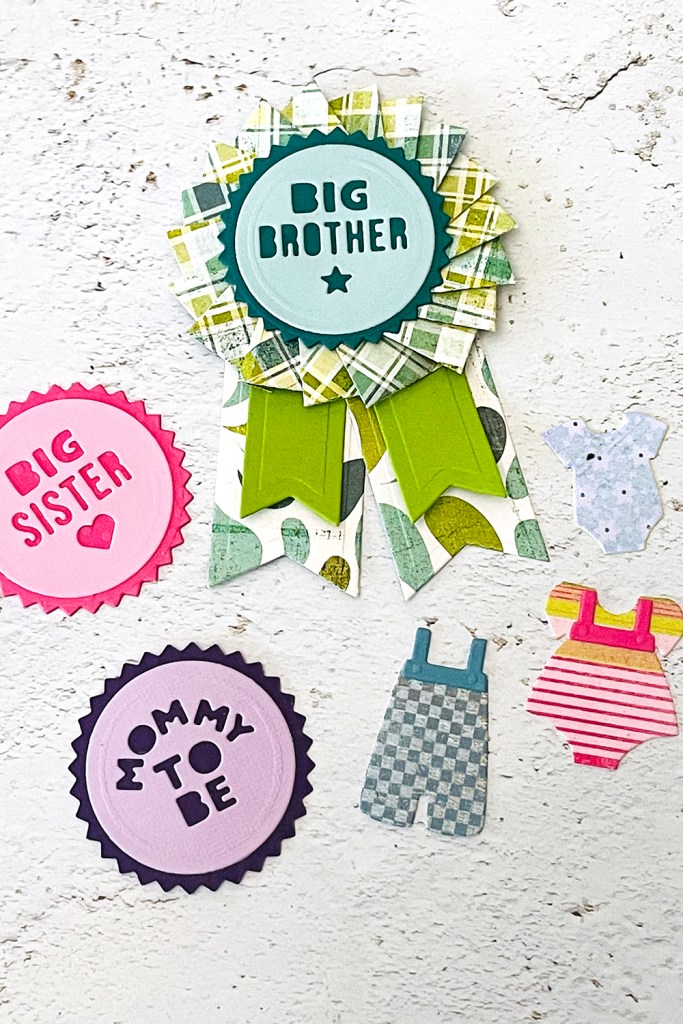 Use these to embellish a baby shower gift, add a pin backing so these can be worn with pride or use these on the front of a baby shower card for the new parents.