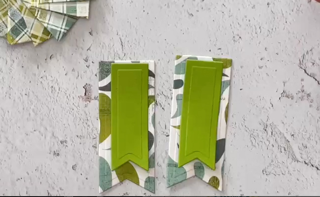 Die cut two large and two small ribbon tails in contrasting colors. Adhere the top edge of the small tail to the top edge of the large tail