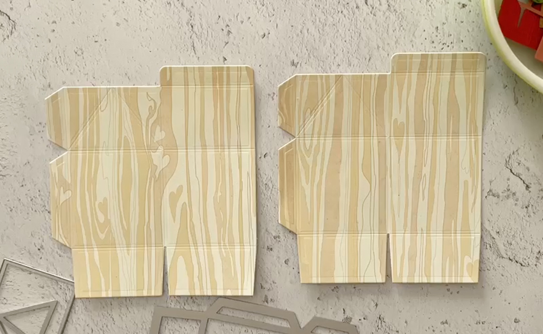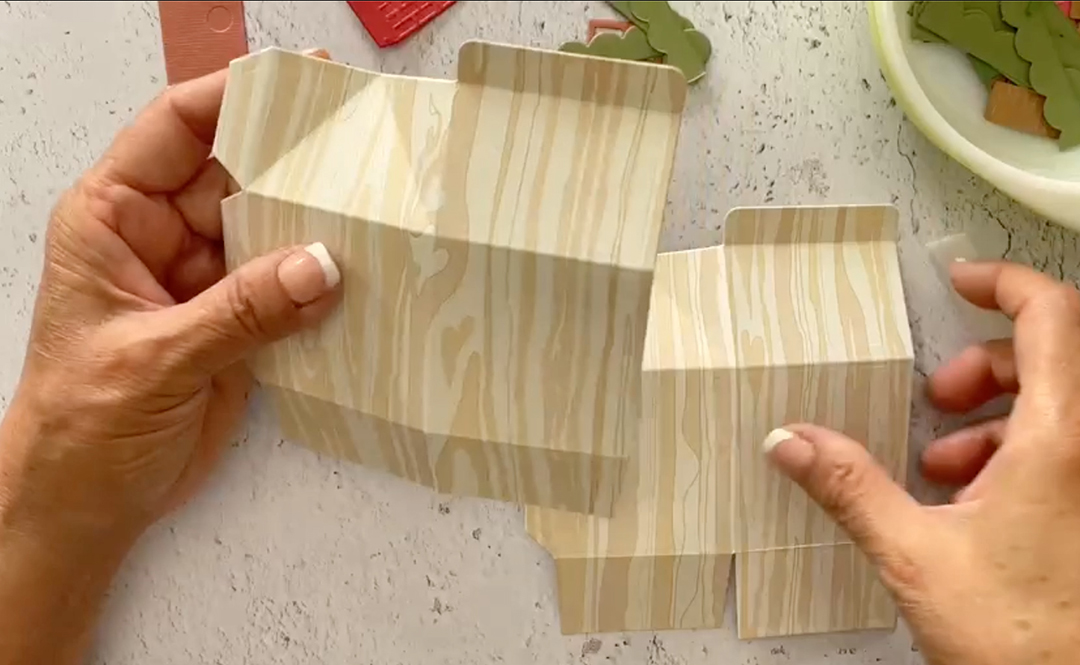 Die cut two of the large shapes. We used a woodsy pattern for our she-shed.