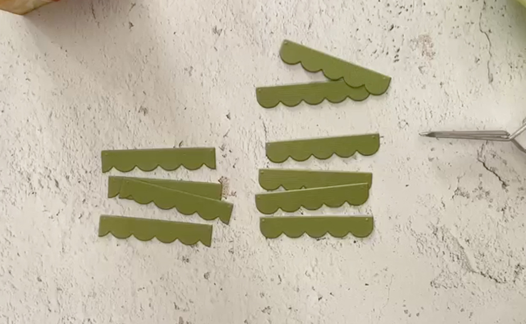There are two styles of shingles, full scallop and half scallop edges. Die cut four of the half scallops and six of the full scallops.