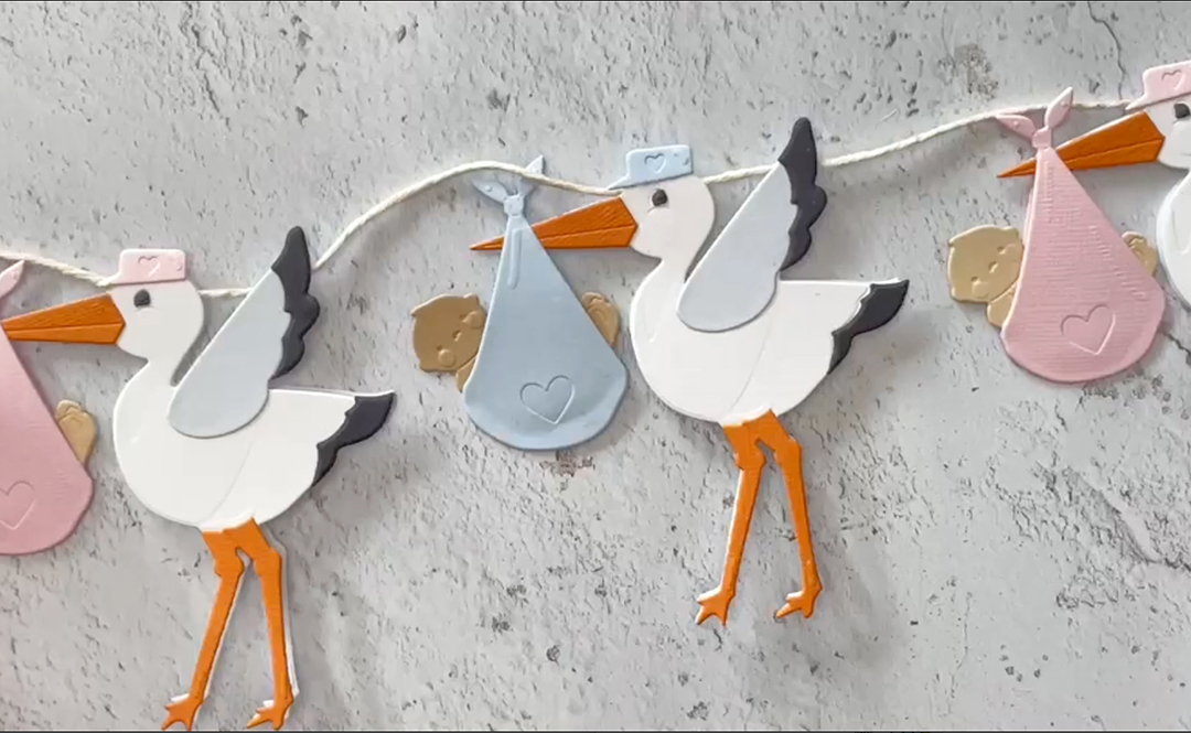 Unfold the stork shape and it should be connected along the top where it did not die cut. Die cut as many of these as you want on the banner.