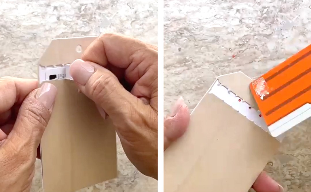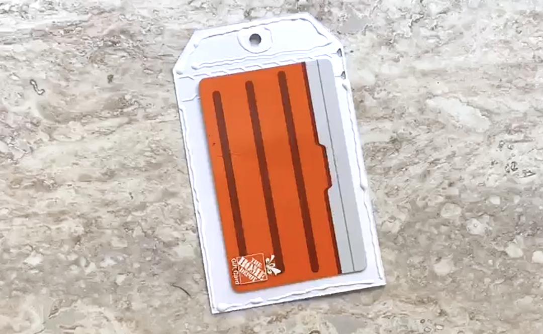 Lay the gift card on the back of the tag being careful to avoid the gift card touching any of the adhesive.