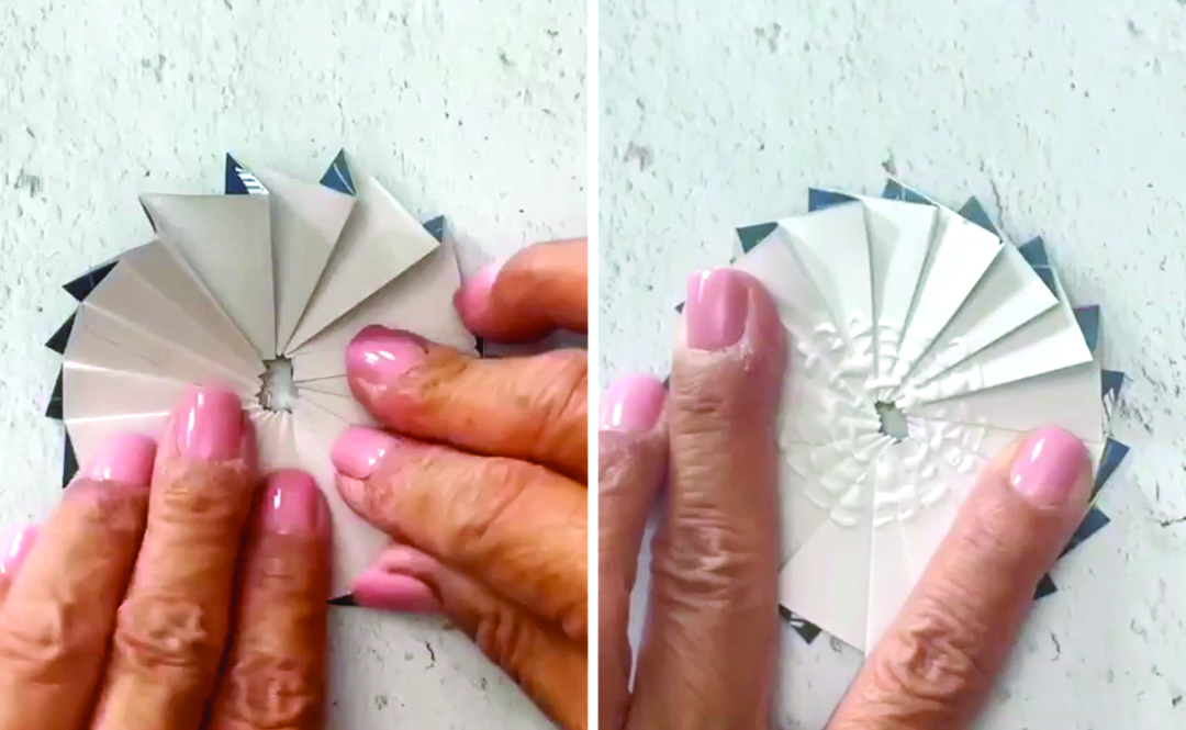 Gather all of the folds to create a fan shape. Use a burnishing tool to make crisp creases. Repeat on all curved shapes.