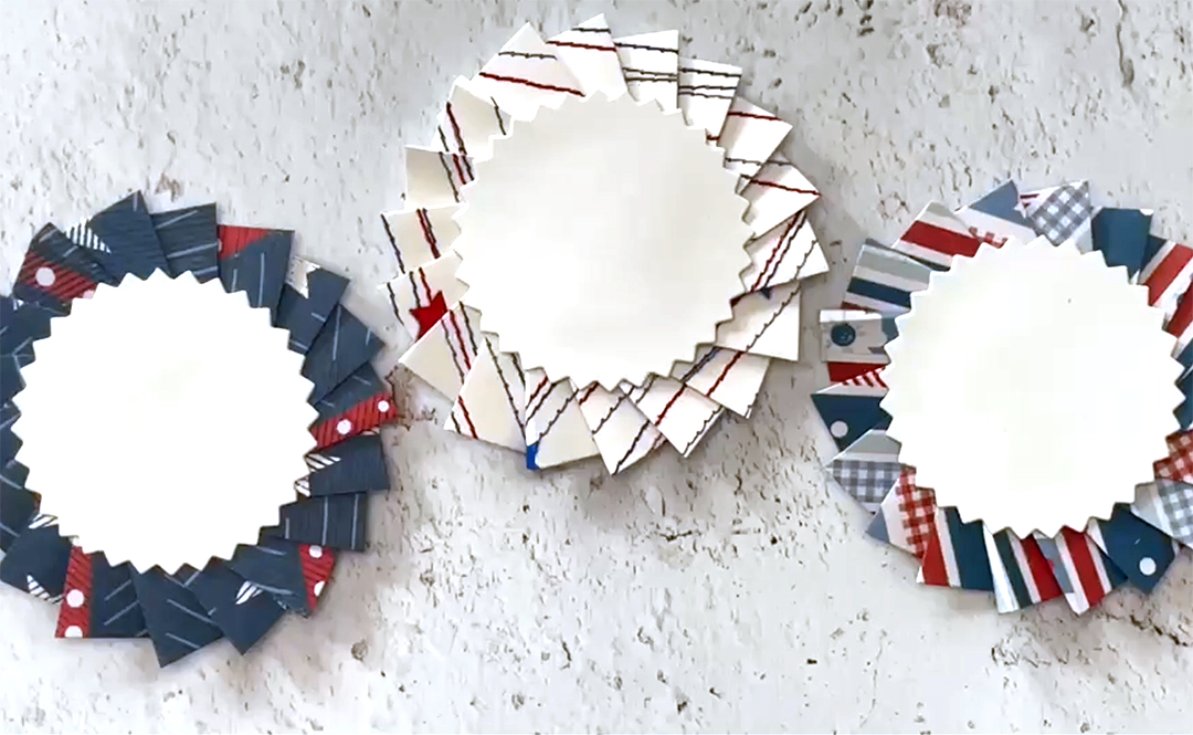 Adhere the pattern paper circles in the middle of the zig-zag circle.