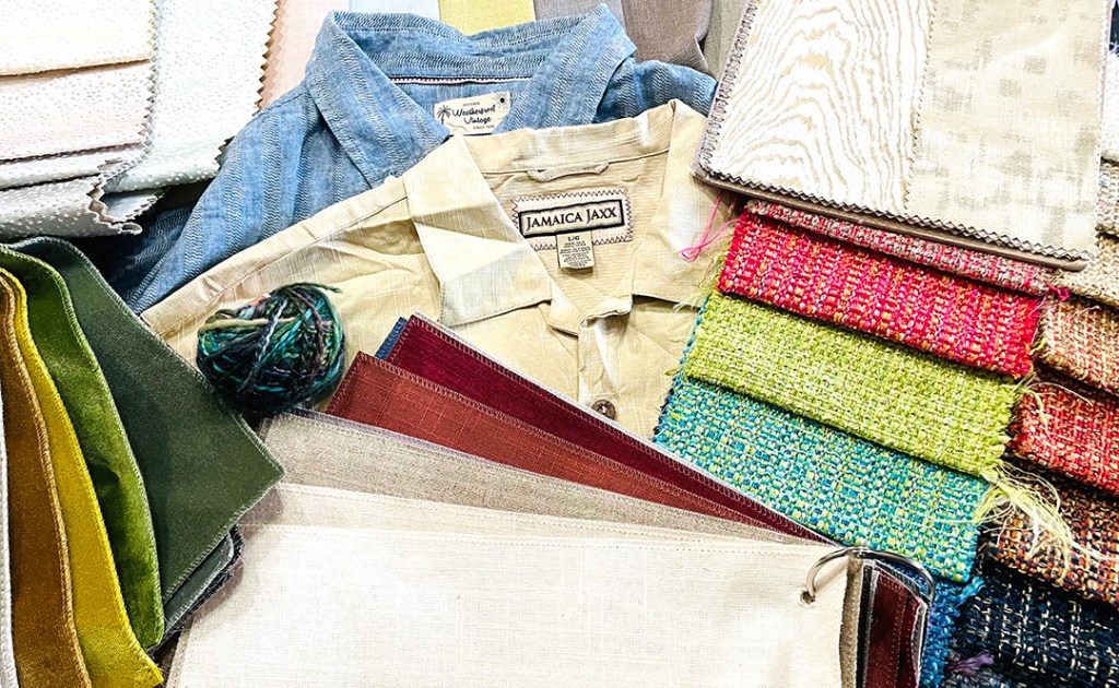 I had a wonderful fabric find at my local upholstery yardage shop. Nicest people ever and a great selection! Many of their remnants are perfect for stitching backgrounds. These sample books were a surprising treasure trove of colors and textures. Also made a visit to my Goodwill store and found two shirts, 100% silk and 100% linen.