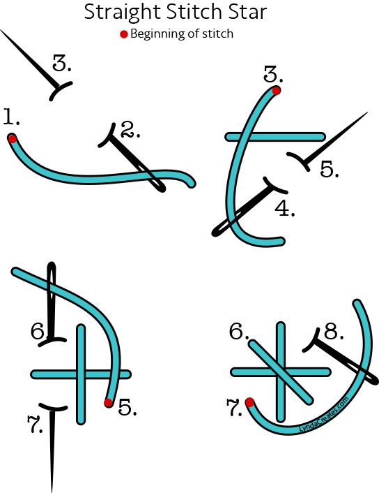 There are several stitches called a “Star Stitch”. I used 4 straight stitches to create my simple Straight Stitch Star