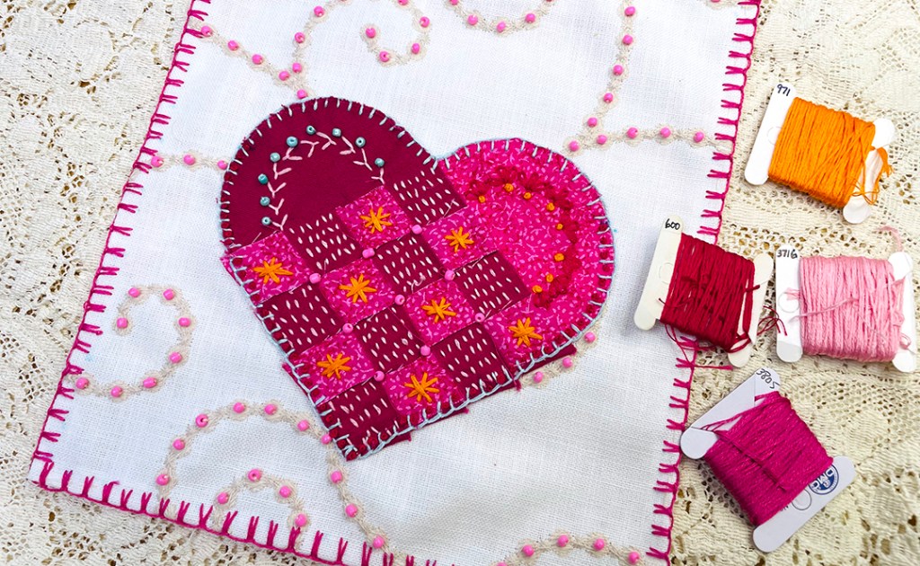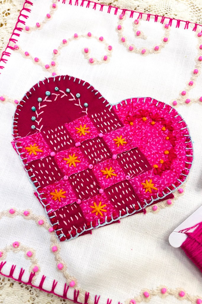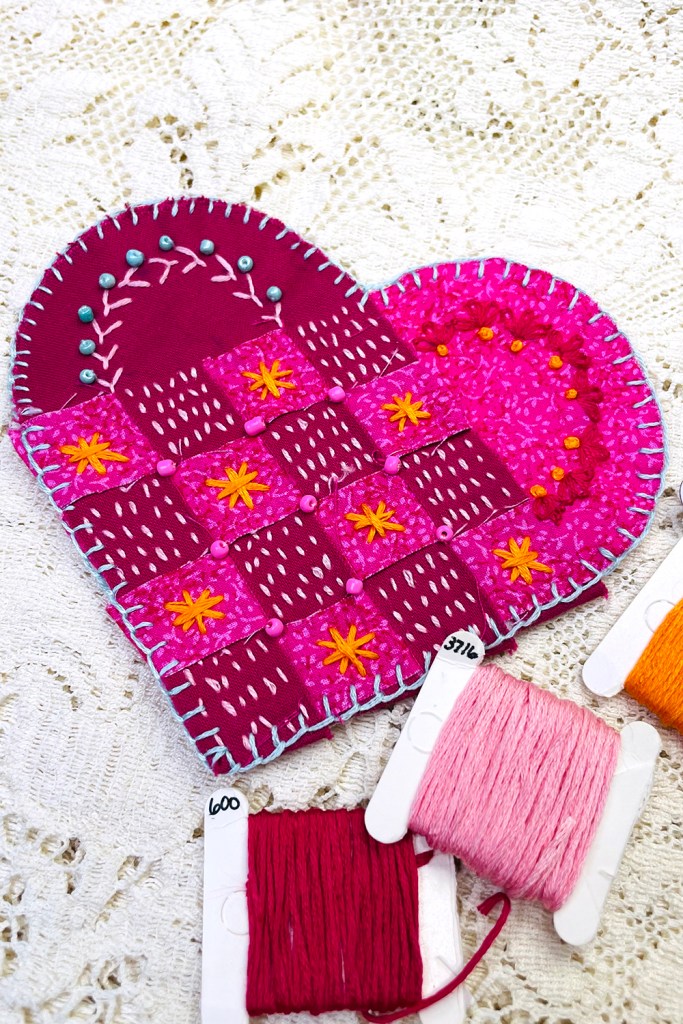 Slow Stitching A Fabric Swedish Heart Pocket on A Cozy Winter Day