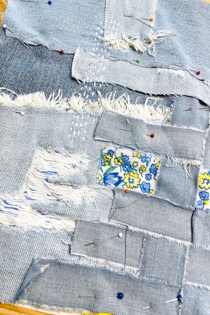 Part 1 – Starting a Mindful, Slow Stitch Vessel Using Thrifted Distressed Denim Jeans